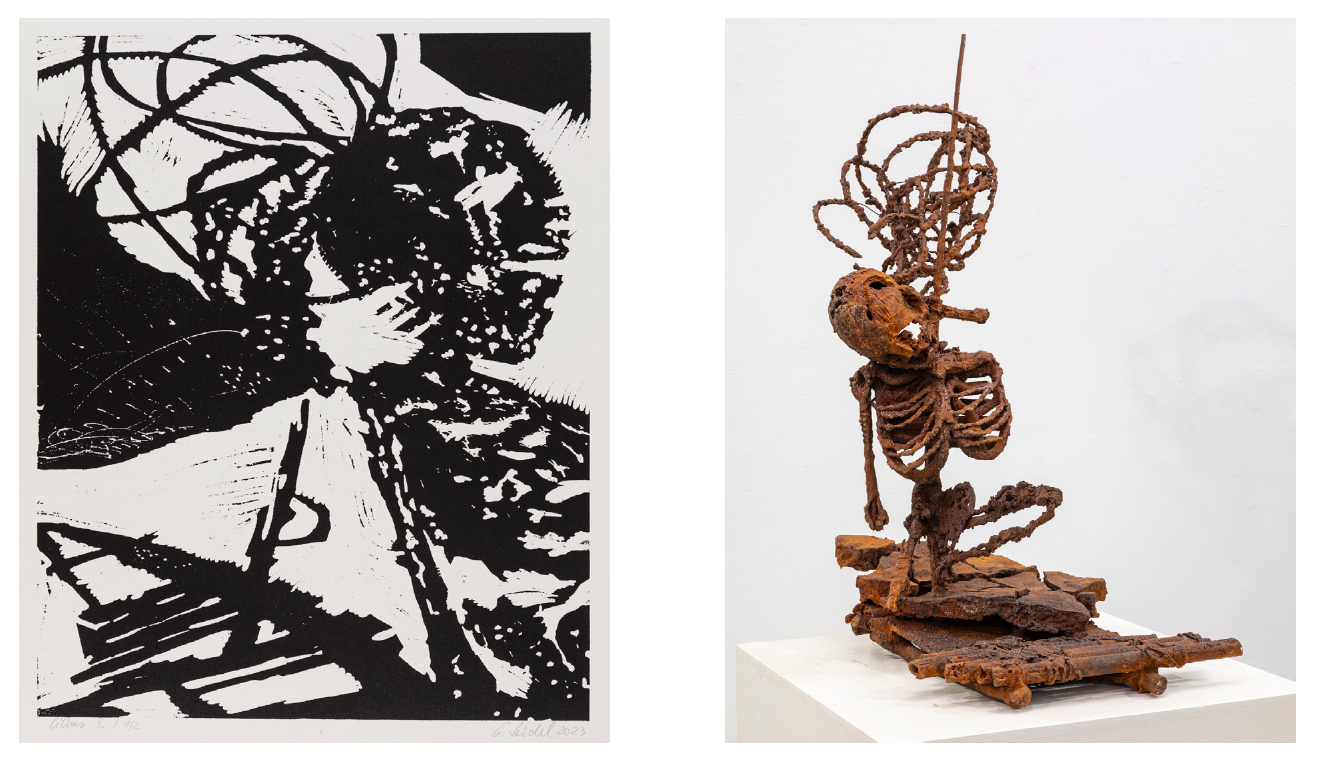 Themen des Menschseins auf und hält diese seit 2010 in Eisen-Skulpturen und Druckgraphiken fest.