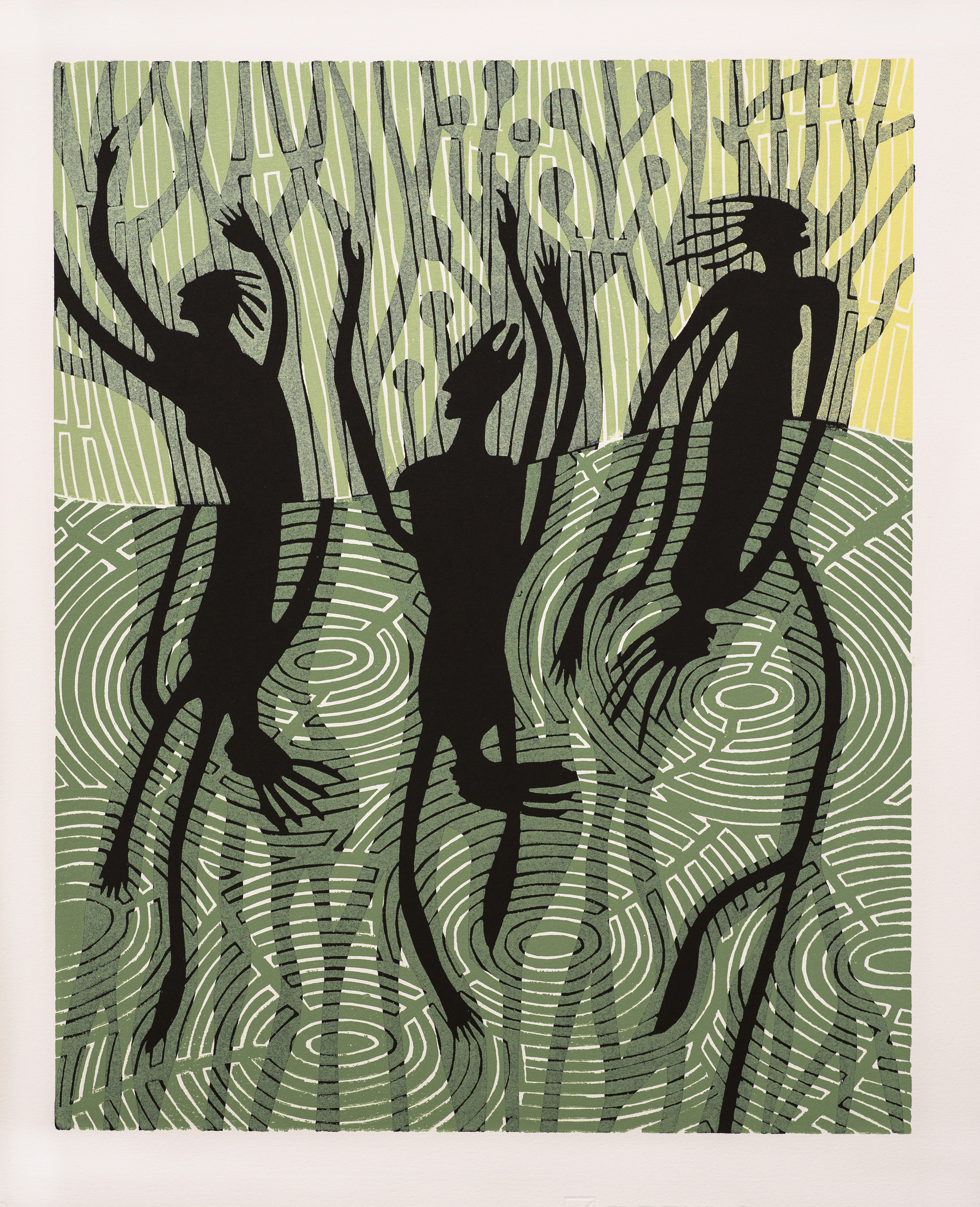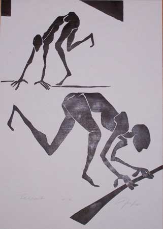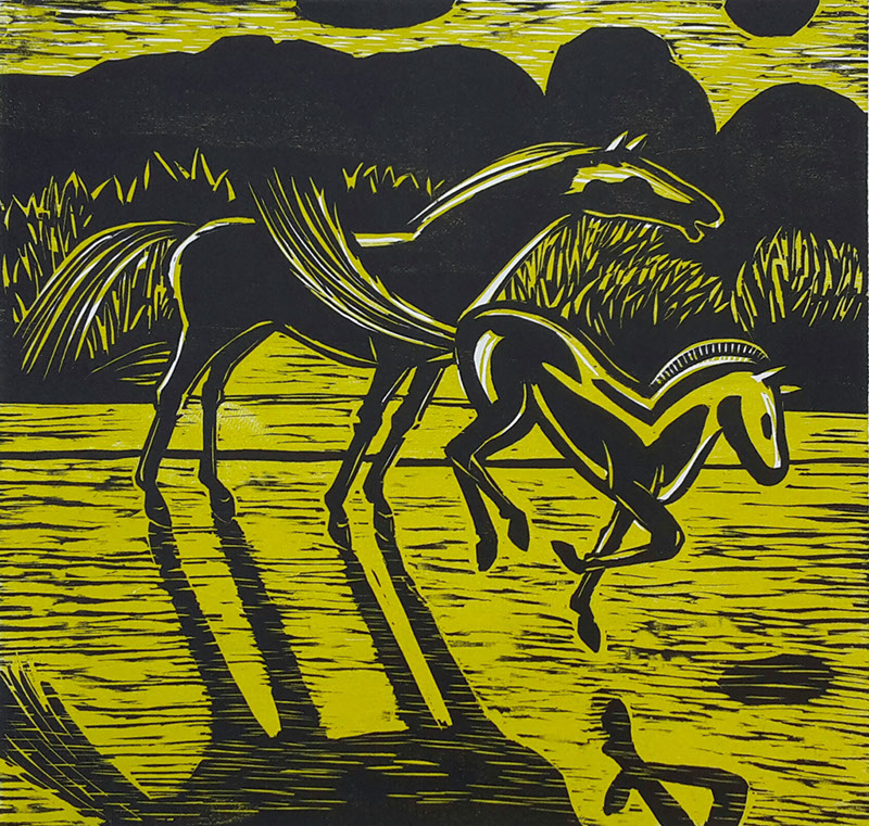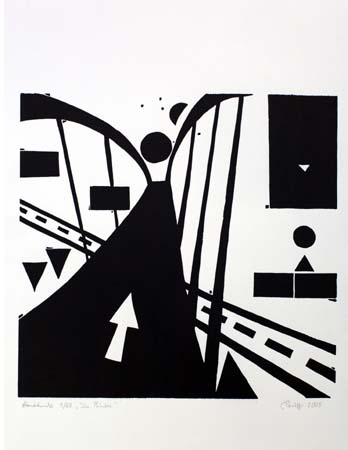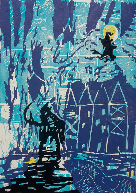 Christiane Werner, Schattenlauf, Farblinolschnitt