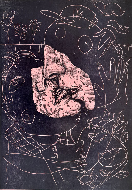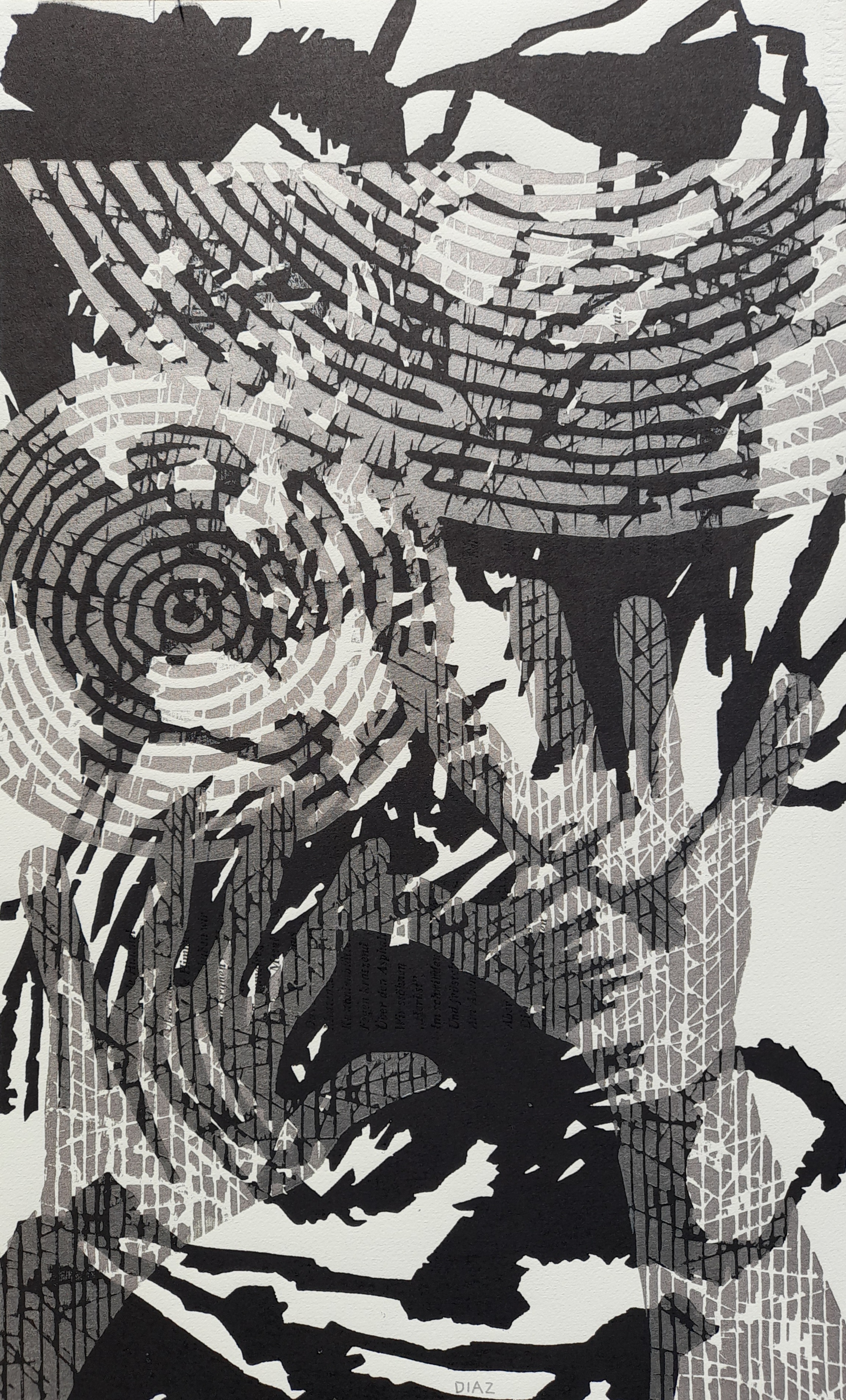 Amei Diaz, cryptic play, Holzschnitt