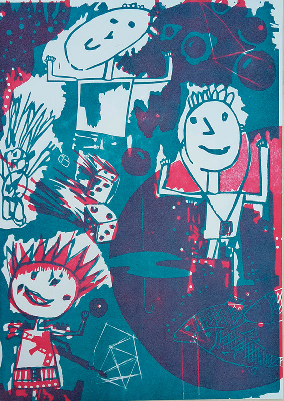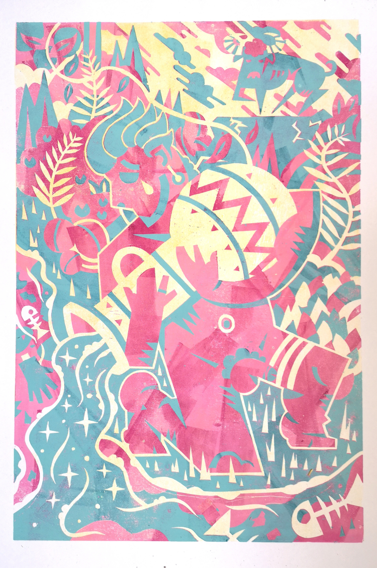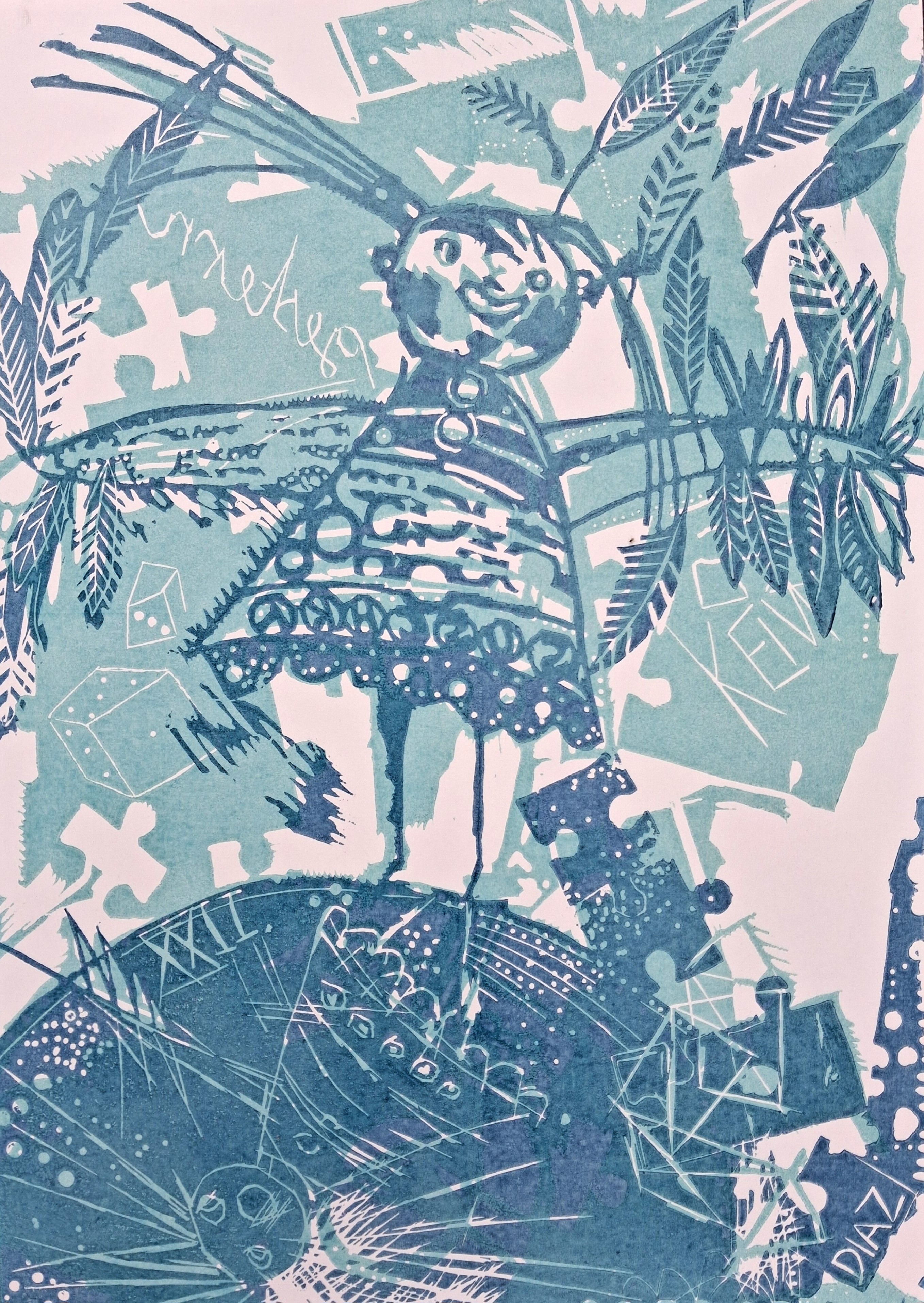 Amei Diaz, Play with me, Farblinolschnitt