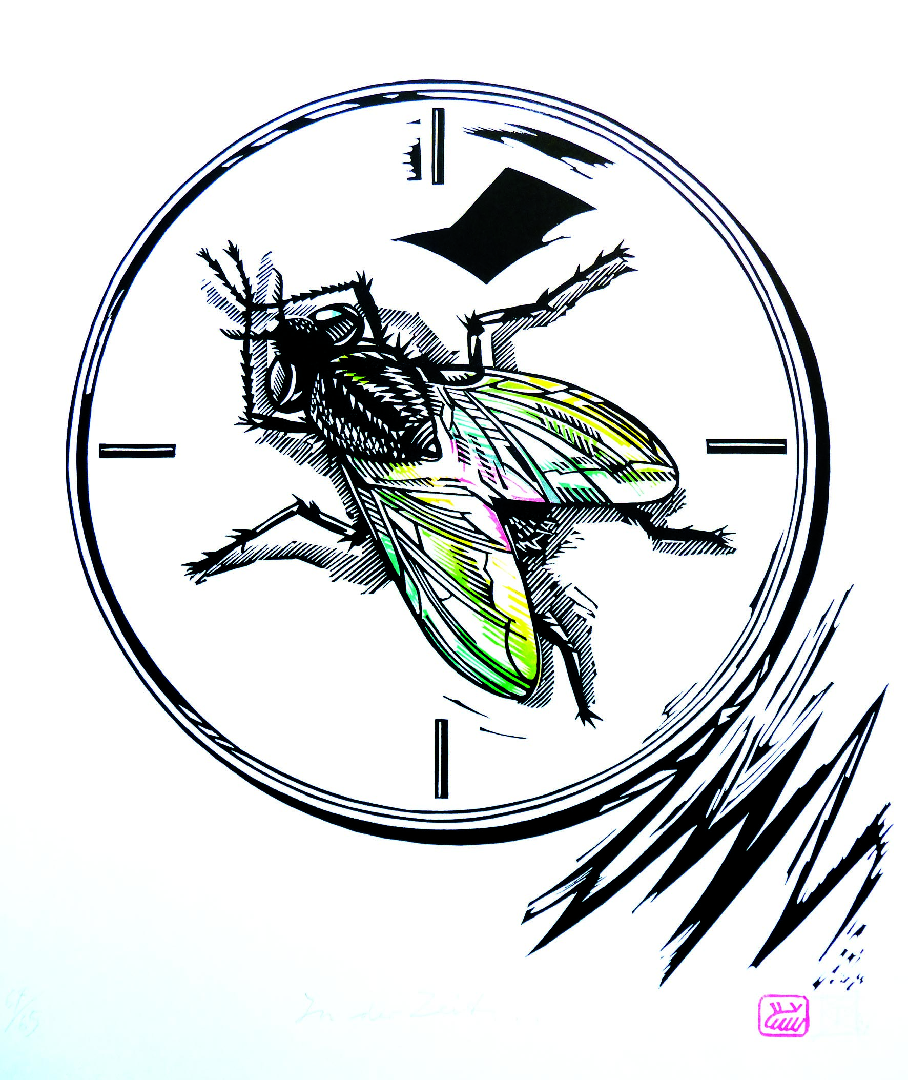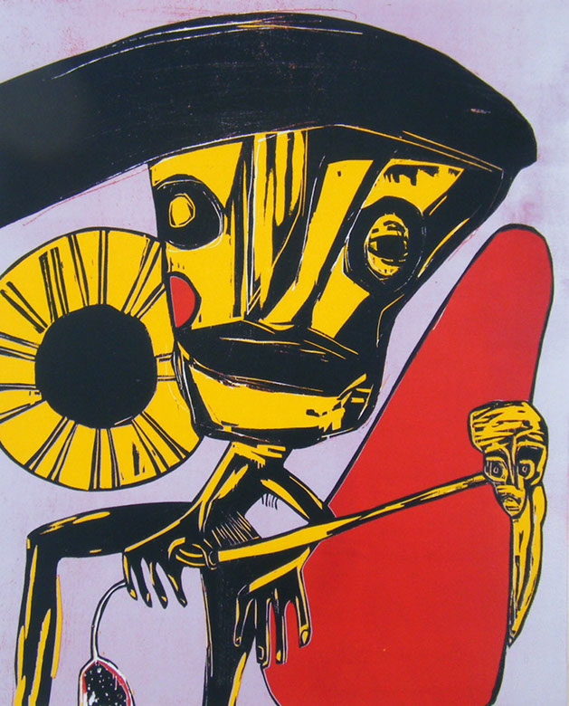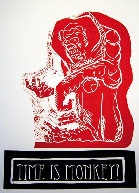 Jörg Engelhardt, TIME IS MONKEY!, Farblinolschnitt