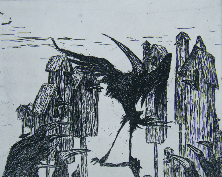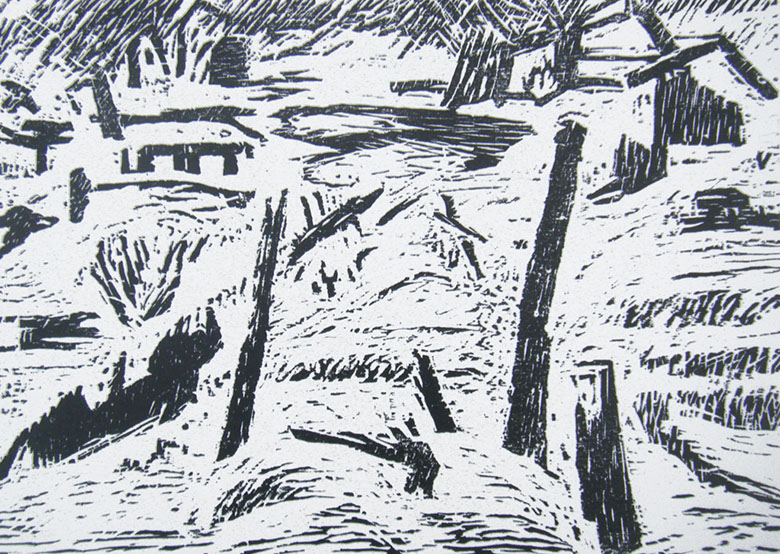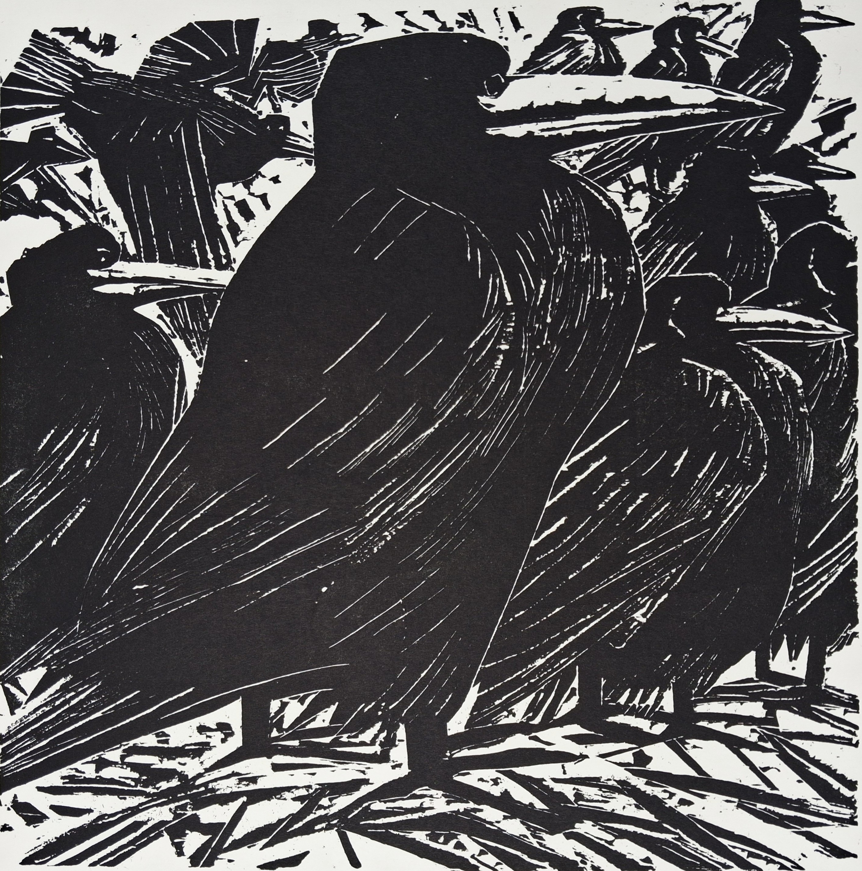 Christa Jahr, Krähen im Winter, Holzschnitt