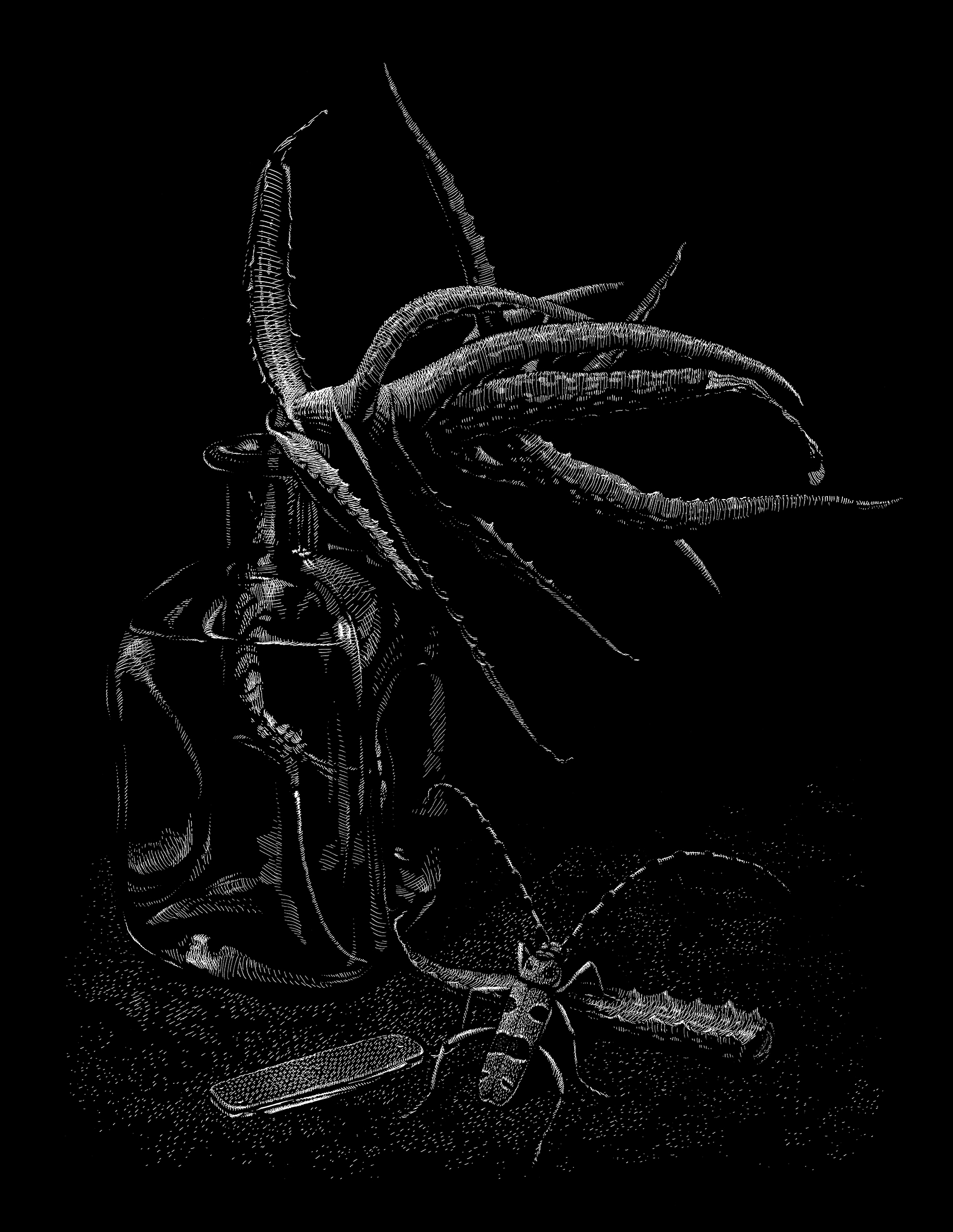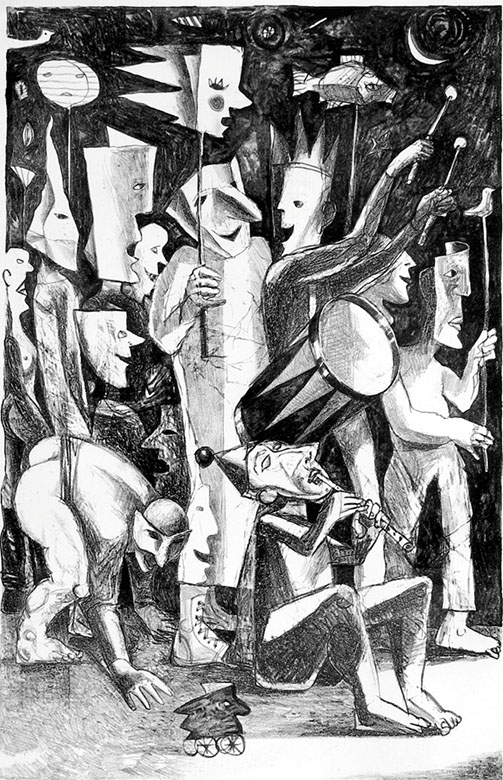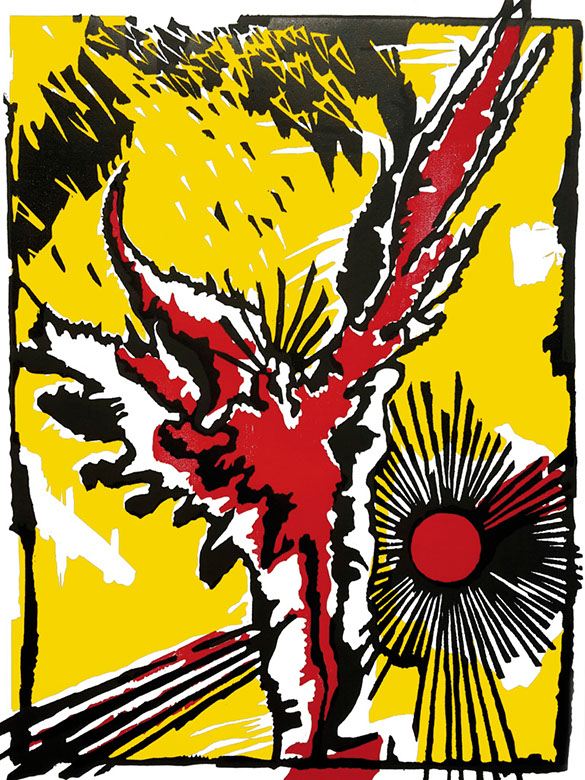 Matthias Schilling, Drohnen-Heil, Holzschnitt