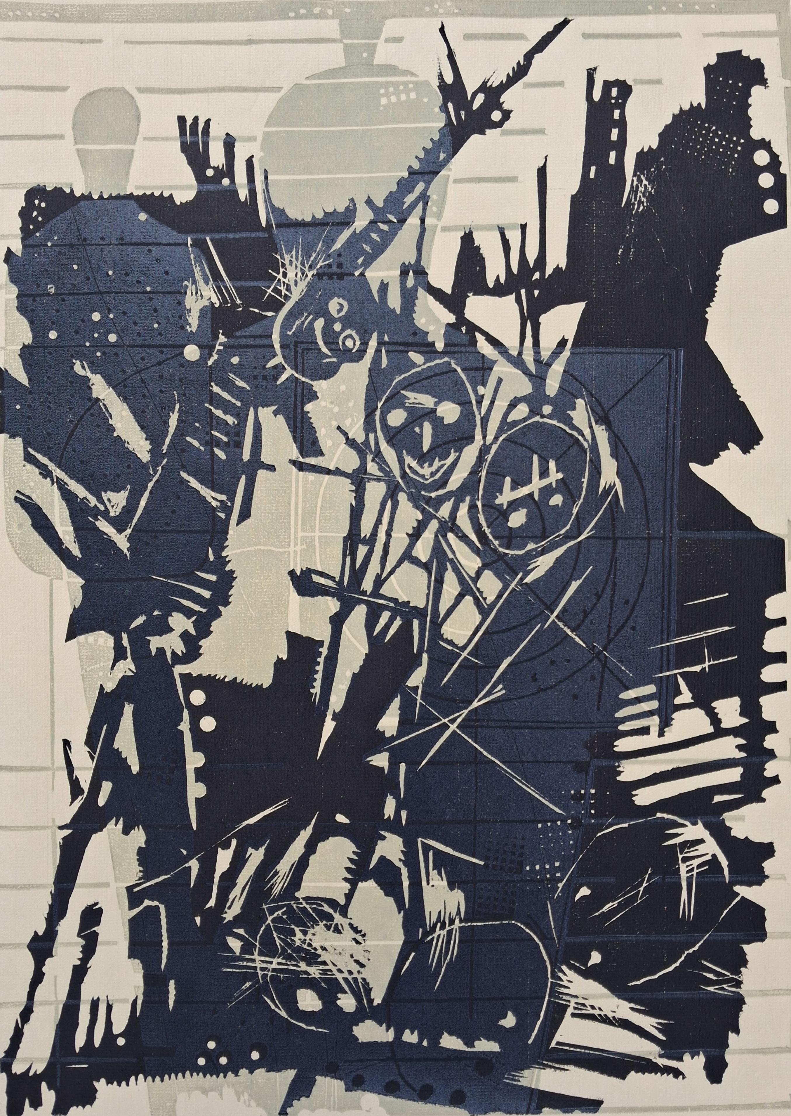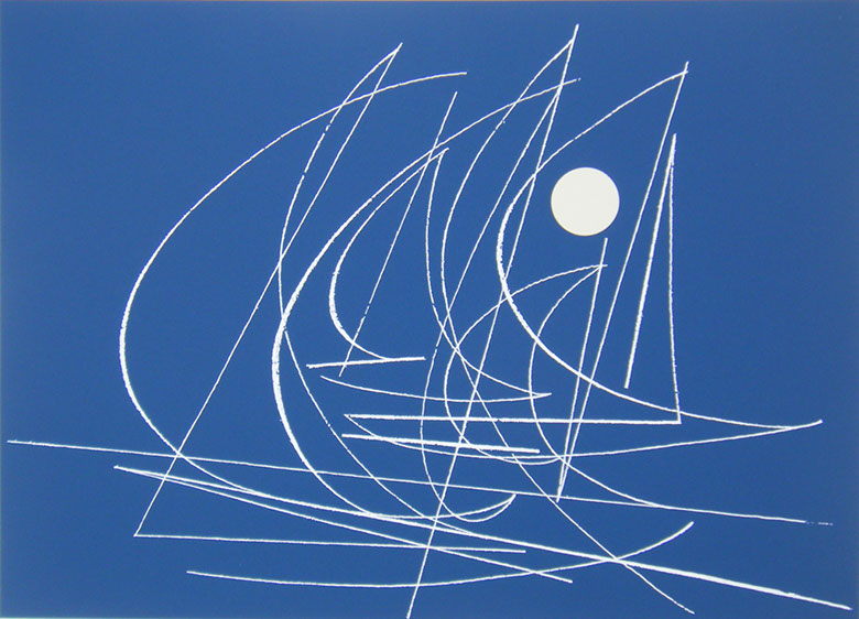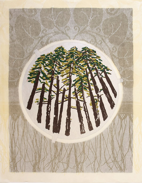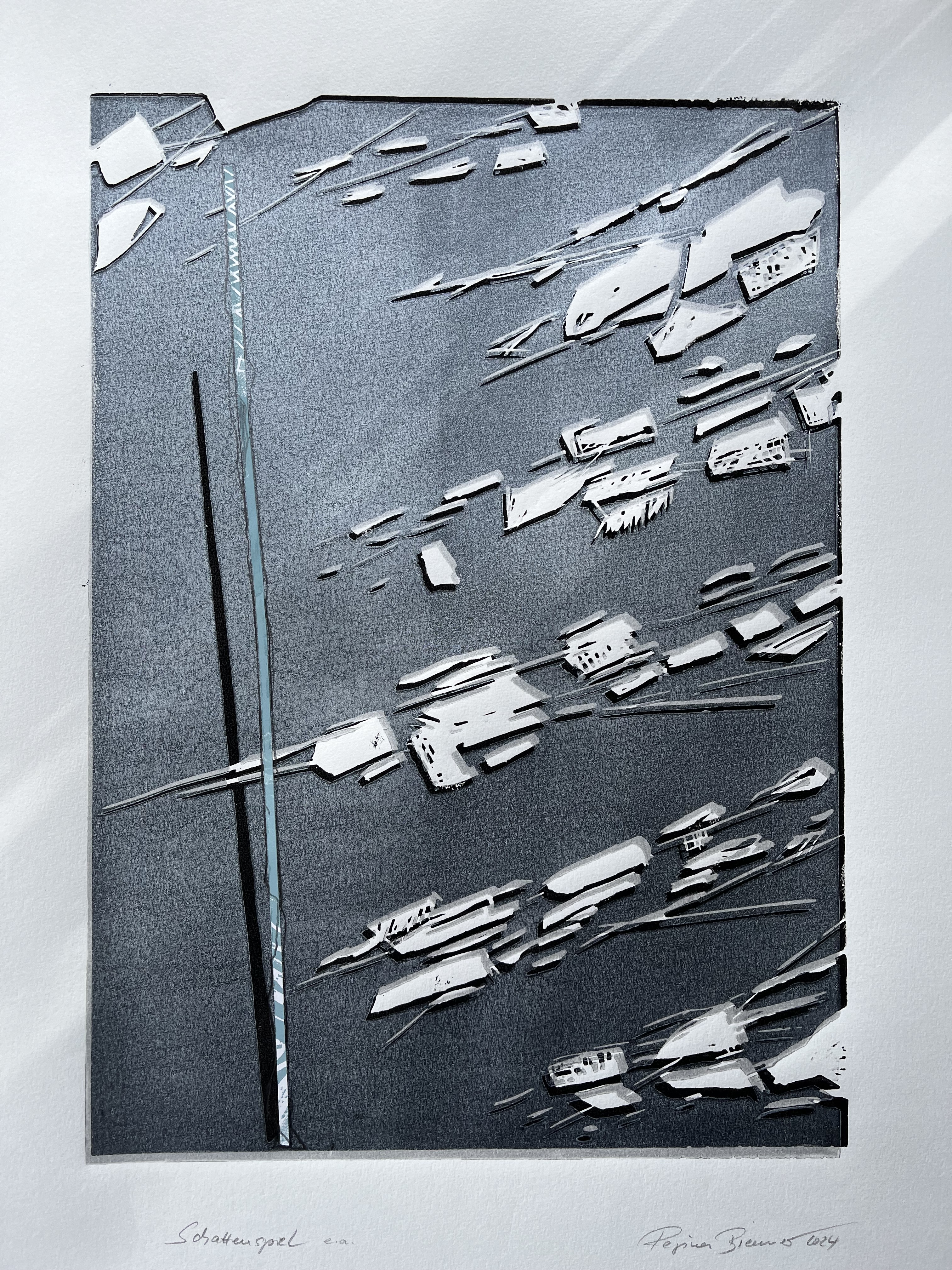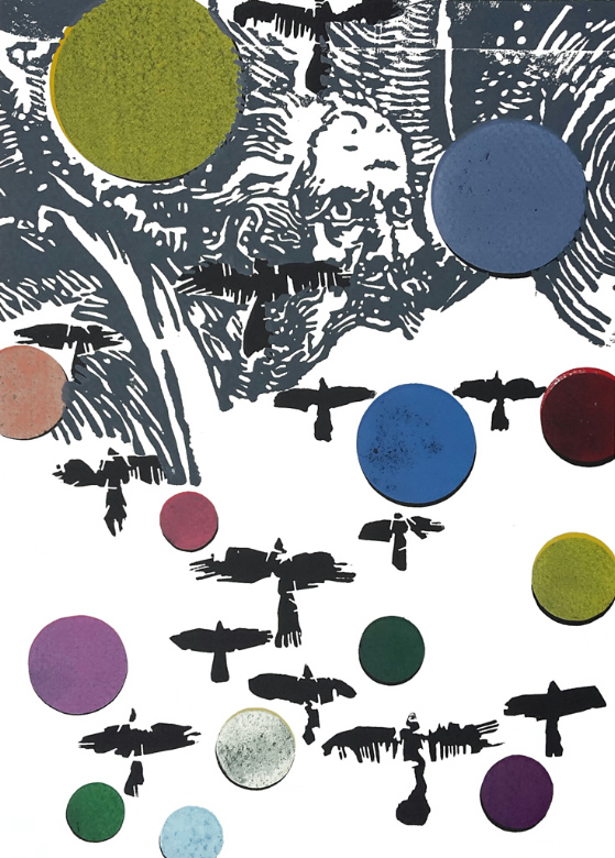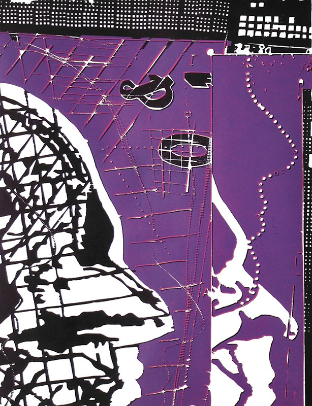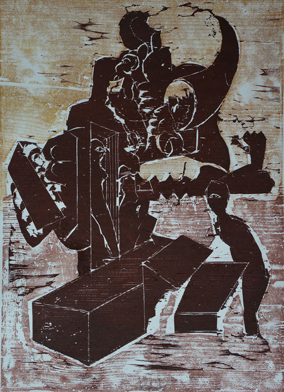 Regina Brenner, Schattenspiel, Farbholzschnitt, Collage