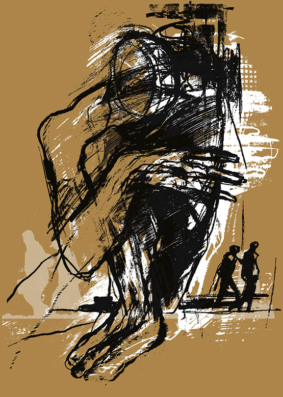 Sabine Riemenschneider, Der Zeitspanner, Linolschnitt