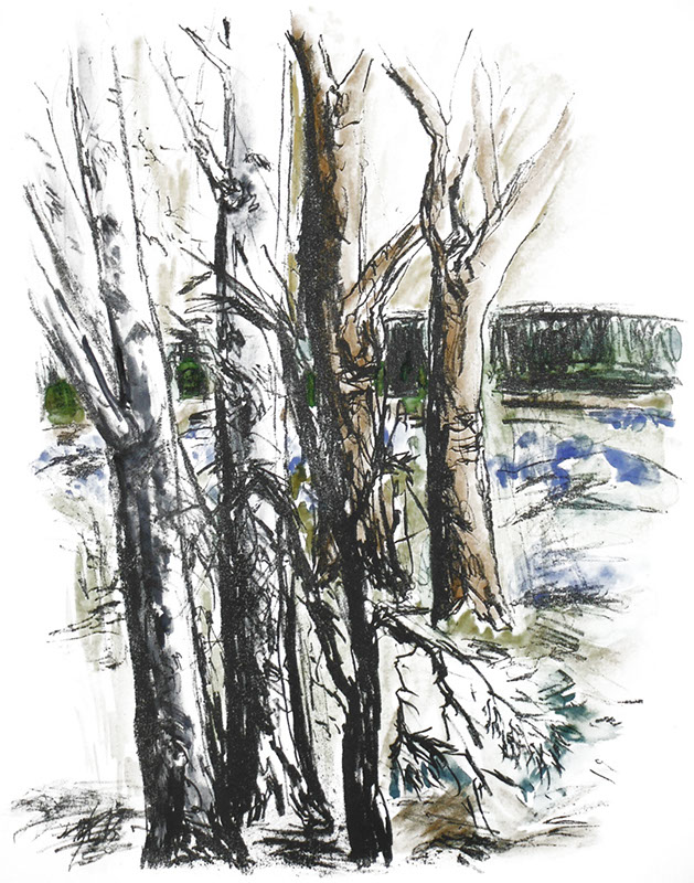 Andrea Ackermann, Winter im Park, Kaltnadelradierung