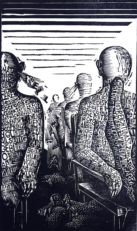 Matthias Schilling, …und Einigkeit und Recht…, Farbholzschnitt