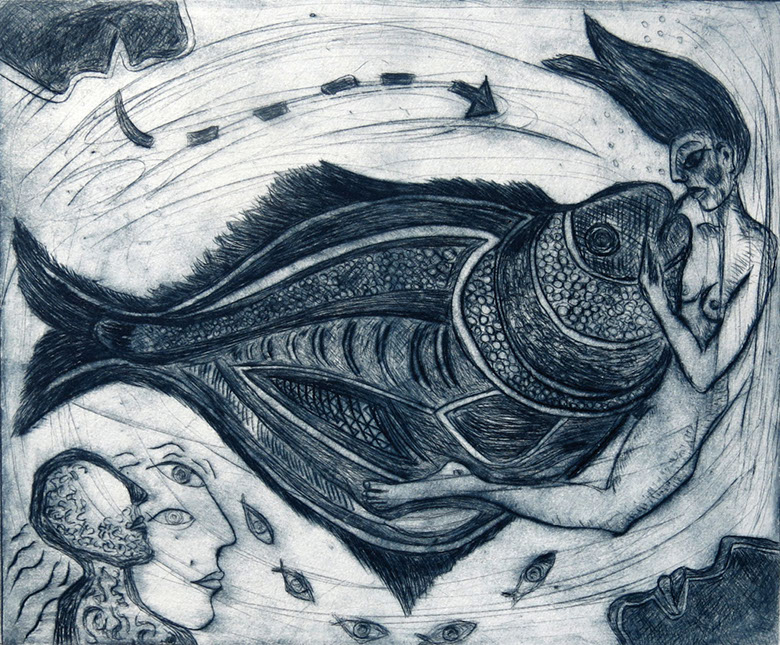Reinhold Herrmann, Fischgeflüster, Radierung