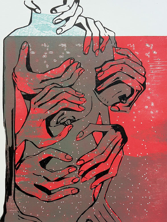 Susann Hoch, Im Sog, Farbholzschnitt