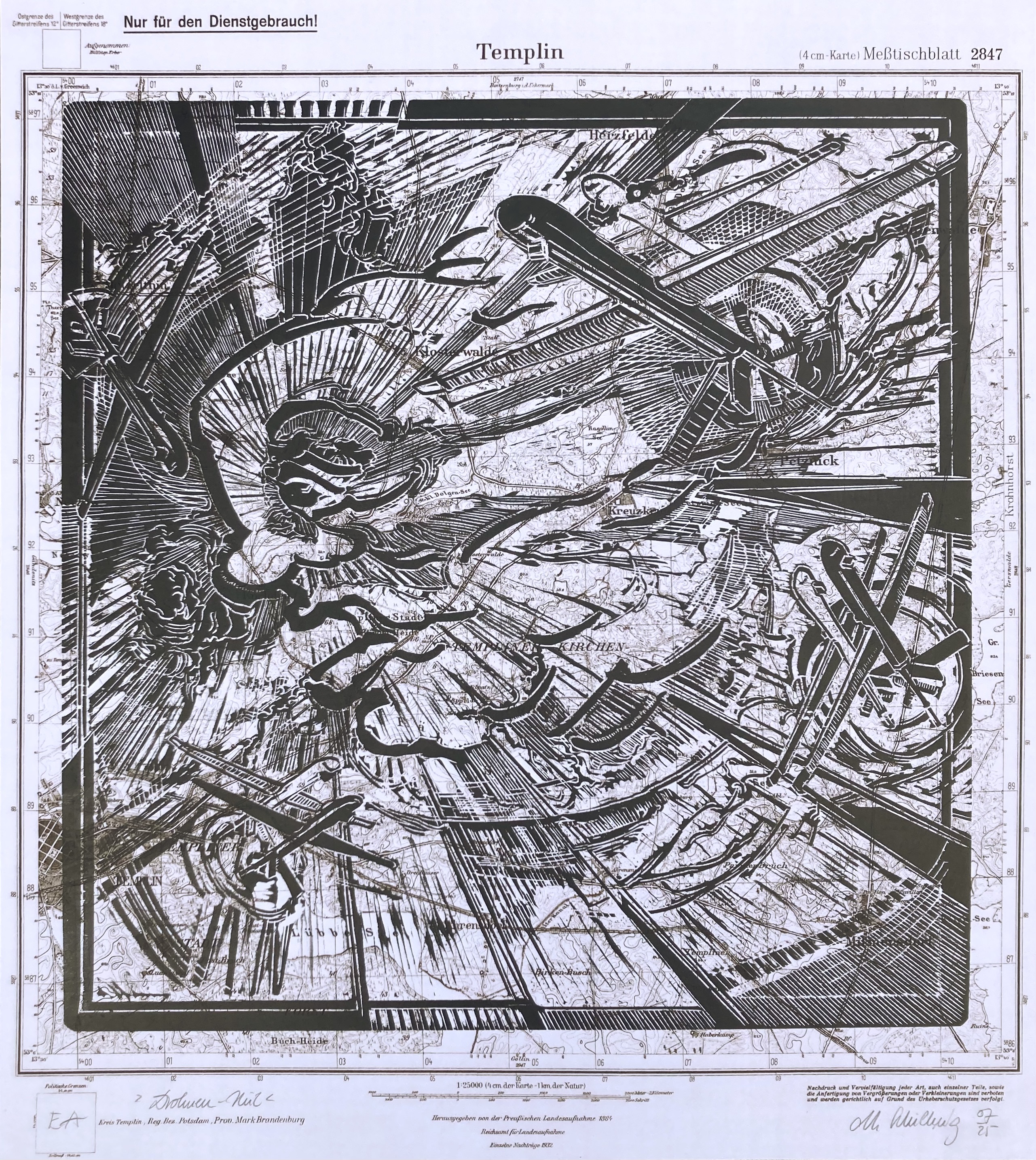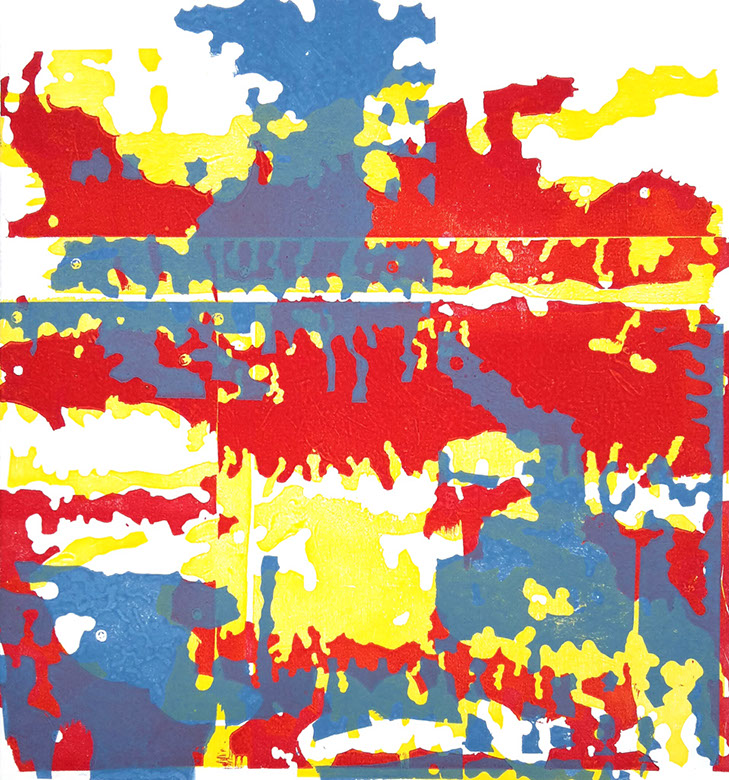 Harald Alff, »50°27’21.26“N, 30°30’16.93“E«, Farblinolschnitt