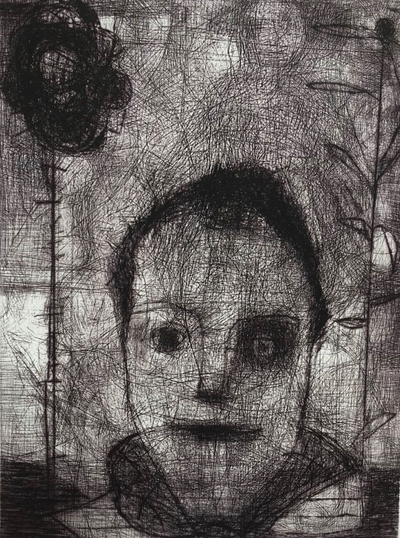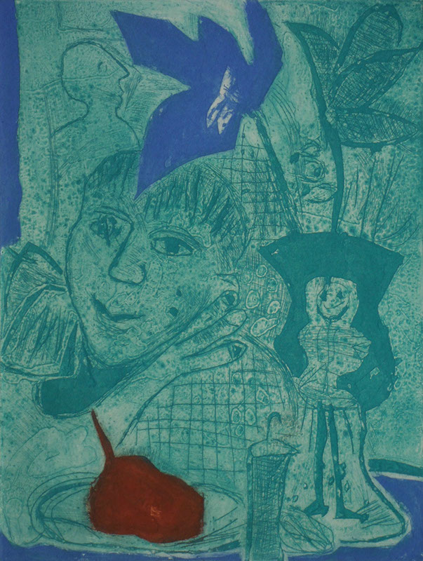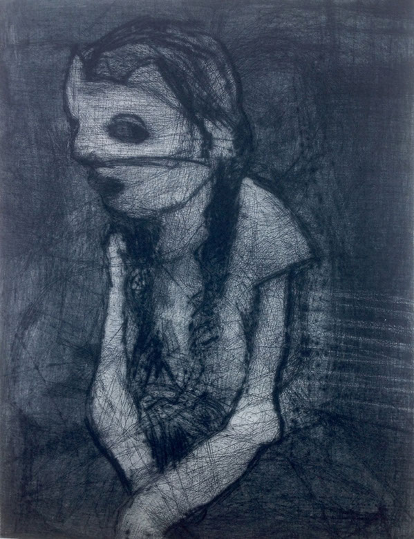 Barbara Mäder-Ruff, Mädchen mit Maske, Radierung