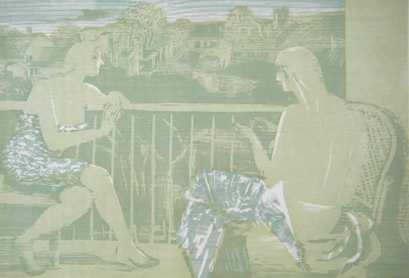 Tino Rex, Mädchen am Meer, Farbholzschnitt