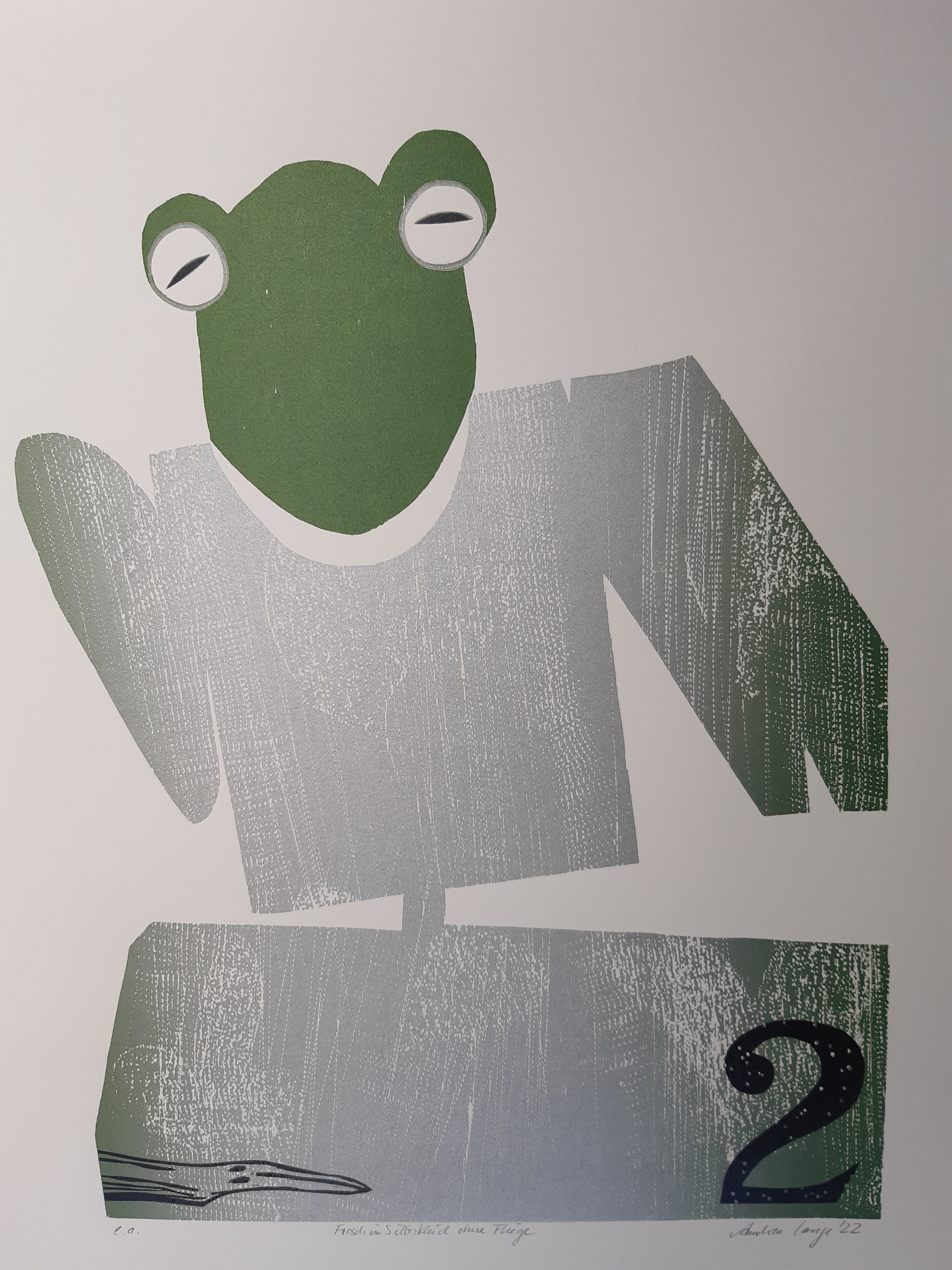Andrea Lange, Frosch im Silberkleid, Farbholzschnitt