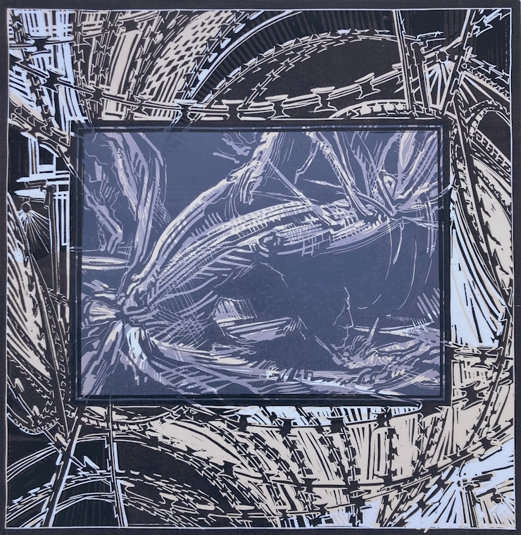 Katharina Fischborn, über Schwarz, Farbholz- Skalpellschnitt