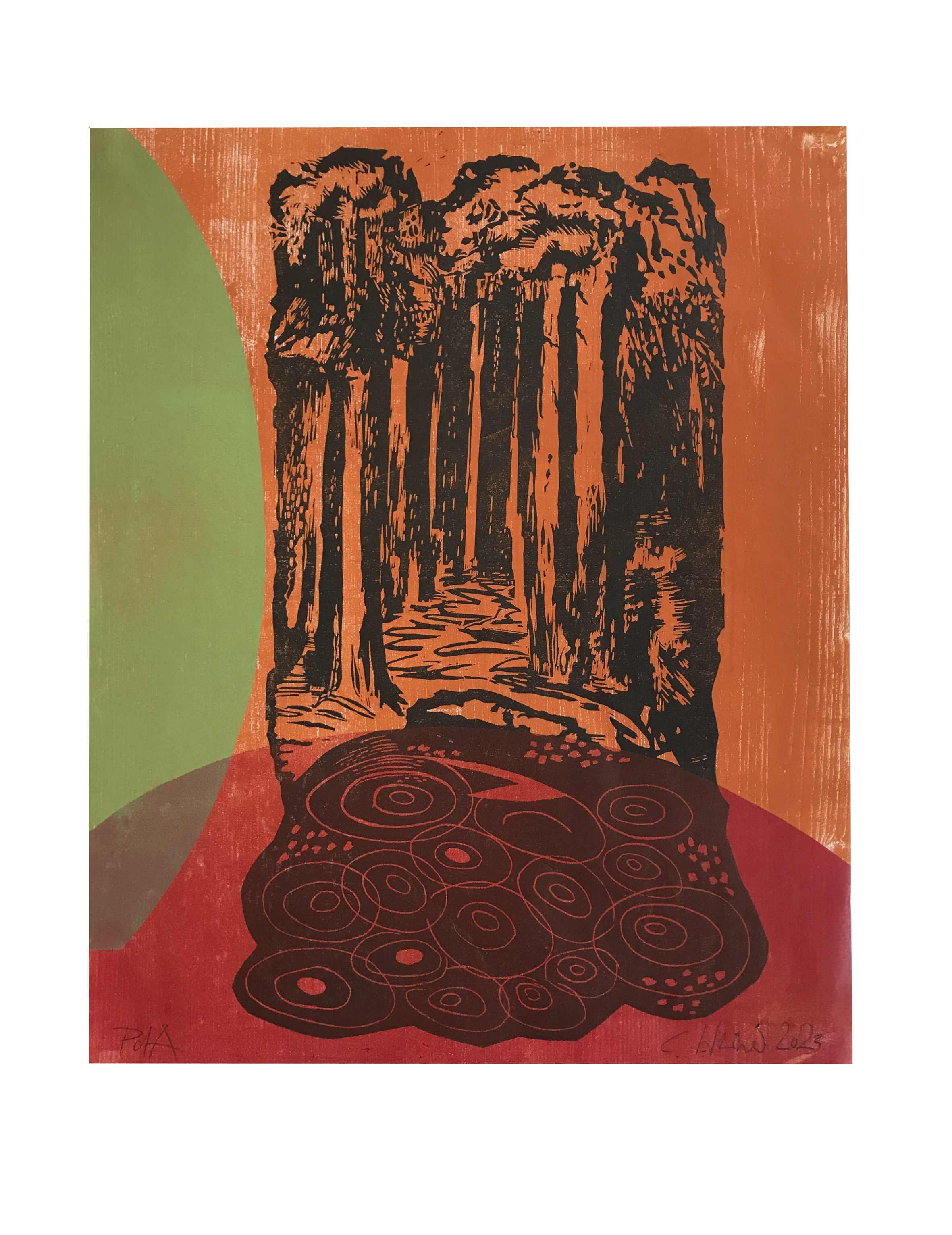 Lauriane Dine, Deux boucles ensevelies, Farblinolschnitt
