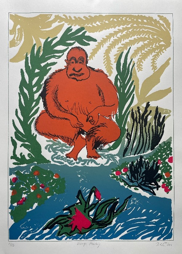 Elise Beutner, orange monkey, Siebdruck