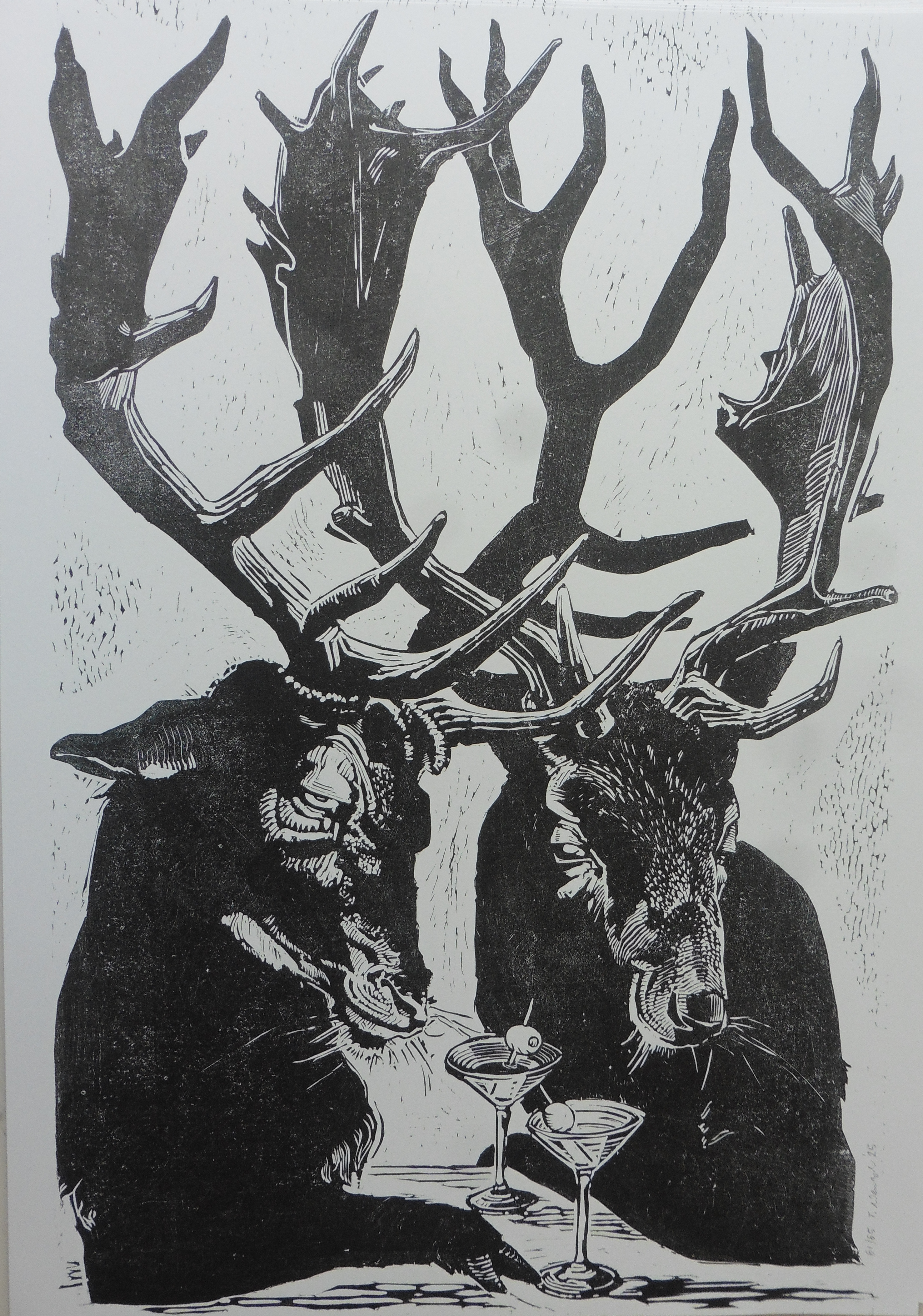 Theresa Wenzel, Cocktailhirsche, Holzschnitt